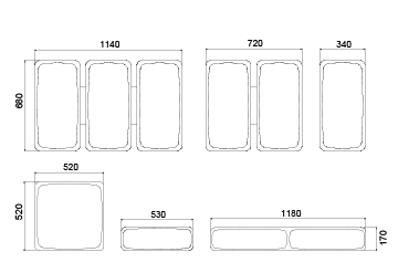 | Size | 530X170X80mm | 1180X170X80mm | 520X520X80mm | 640X340X80mm | 720X680X80mm | 1140X680X80mm |