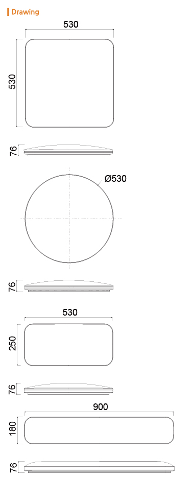 | Size | 530X250X76 mm | 900X180X76 mm | 530X530X76 mm | 530X530X76 mm |